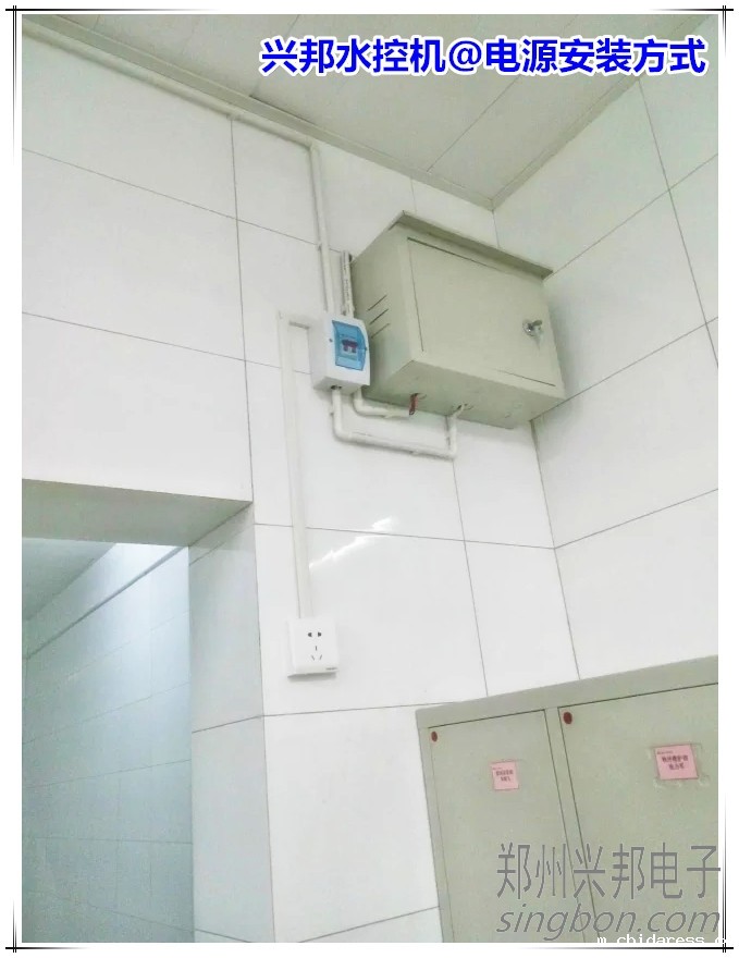 这张图是IC卡水控机系统配套的电源安装现场图,由于该浴室是集中浴室,所以配备的电源也是可集中供电的大电源,那么电源线布线宗旨就是要防水美观,由于浴室内潮气大,所以电源要安装在电源箱内,这样具有一定的防漏电防潮的安全保护措施。