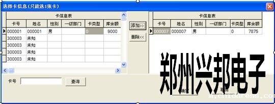 b 在左边的卡信息表中选择挂失的卡号,单击[添加]按钮添加到右边的卡信息表中。