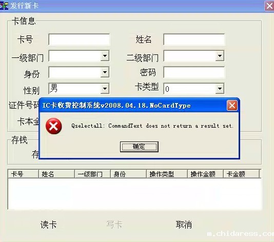 问:485水控机在发行新卡的时候提示错误 “Qselectall:CommandText does not return a result set.”