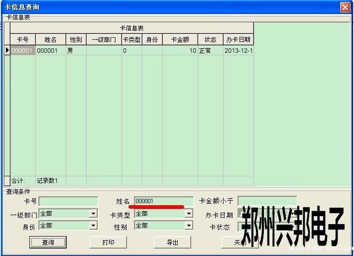 如果不知道此卡的卡号,可以从卡信息表中查看到此卡的信息,点数据管理--卡信息表,打开此表后输入姓名,然后查询就可以查看到此卡的卡号,然后再挂失即可,如下图所示