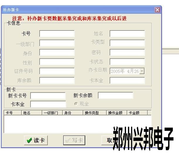 2、把新卡放在IC读卡器上,然后在软件里有个卡管理--补办新卡,