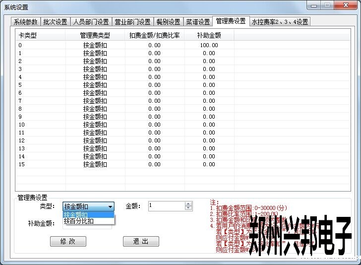 如上图所示,可以根据卡类型设置不同的优惠比例,比例的范围是1-200%,如果是打九折,百分比设置为90%就可以了,如果是打八折,百分比设置为80%就可以了。