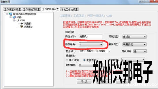 终端参数类型的选择:打开设备设置,在工作站终端设置里,添加终端里可以选择参数组名,或者添加终端后也可以修改选择的参数组名。