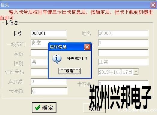 4、挂失成功后要连通消费机,下载一下挂失单,这样拿在机器上刷就会显示4—ERR挂失卡。