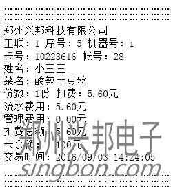7. 对一个用户卡,小票打印一体机在本机上的当次明细以小票的形式打印出来,设置打印张数,以便客户报销和查账,进行订餐、取餐、菜单消费、直接扣费打印小票内容各有不同。