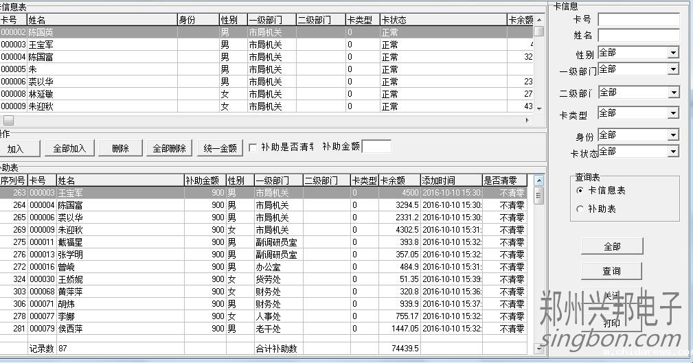 2、软件上卡管理--补助入卡输入。在里面添加补助的人员和金额。如果需要清零的话就把清零勾选上。